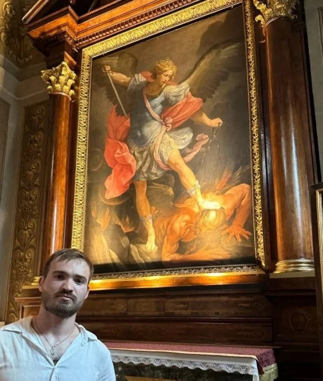 A private collector had a cherished statue of St. Michael which was based off of the Guido Reni’s The Archangel Defeating Satan 1635. He wanted his own painting like this, but without much variation. I was able to go see the original in person earlier that summer in Rome.